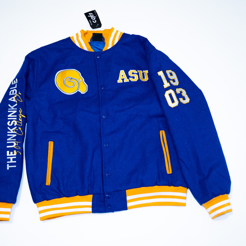 HBCU themed Varisty Jackets made for Albany State University and Savannah State University. Made of wool along wiht a nice lining to match the quality all around. All jackets are the same excpet for the black jacket which has black leather sleeves. All logos are embroidered and sewn on.